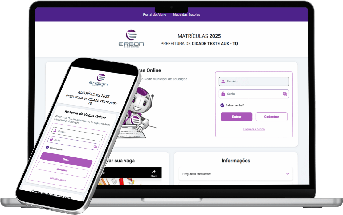 Controle total de cadastros de escolas, alunos, turmas e cursos em um único ambiente seguro.