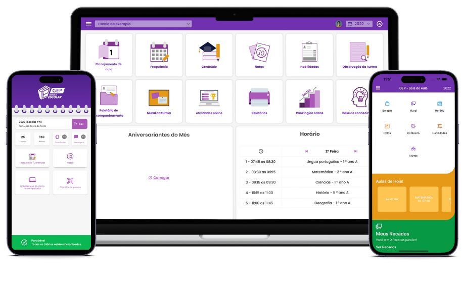 Com o GEP – Gestão Escolar, o Diário Escolar é 100% digital, integrado e inteligente.